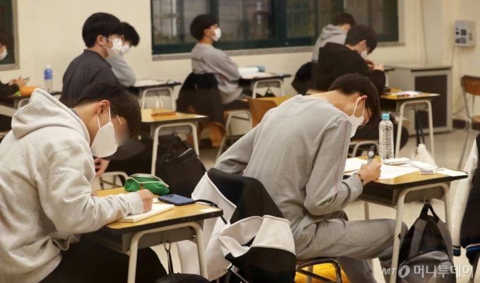 수능 점수가 필요하지 않은 학생들도 수능을 대비하는 학생들과 함께 수업을 받는다.