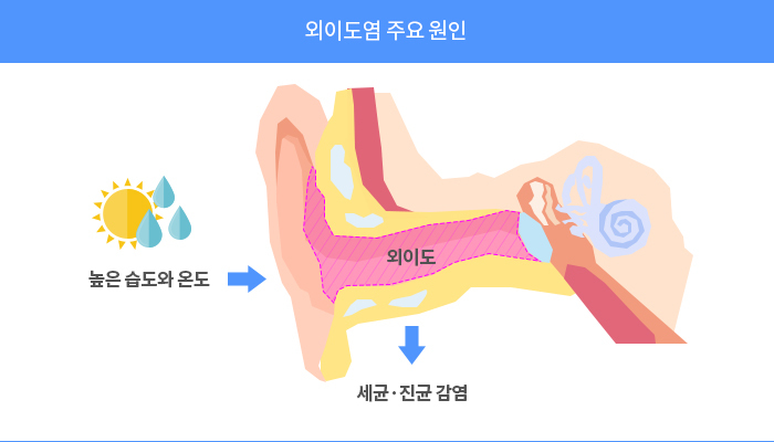 귀에서 고막까지 이어지는 통로인 외이도는 피부 중 세균 감염률이 매우 높은 곳 중 하나다. 특히 습도와 온도가 올라가면, 감염에 더 취약해진다.