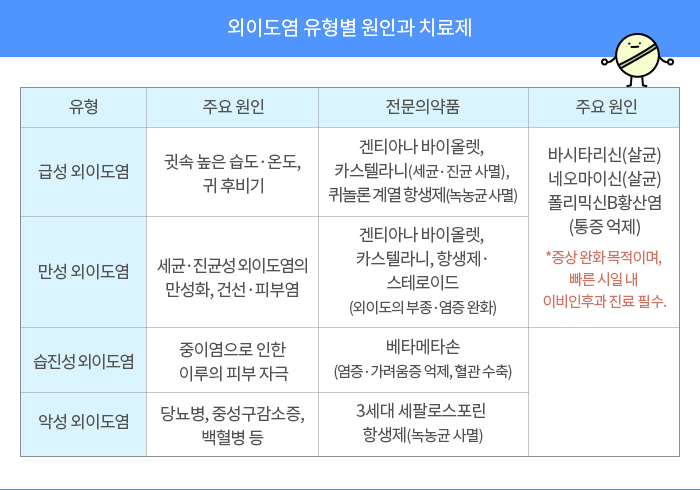 이번 약 이야기에선 외이도염의 유형과 외이도염 치료제에 대해 알아본다.